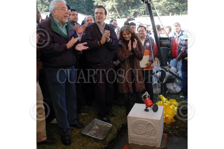 MÉXICO D.F., 08DICIEMBRE2007.- Jorge Arganiz secretario de obras y servicios, el jefe de gobierno Marcelo Ebard acompañado de su esposa Mariagna Prats durante la colocacion de la primera piedra del DIF-Tlalpan en San Miguel Ajusco. FOTO: RODOLFO ANGULO/CUARTOSCURO.COM