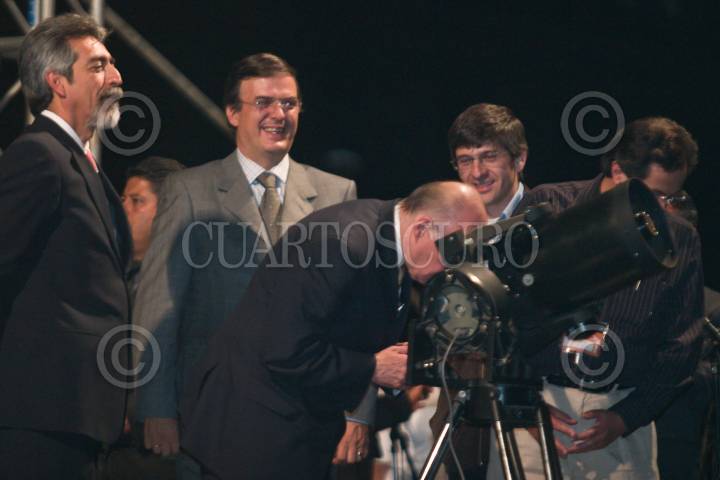 MÉXICO D.F. 20FEBRERO2008.- Enrique Villa Rivera, director general del IPN; Marcelo Ebard Casaubon, jefe de gobieron del DF y Jose Narro, rector de la UNAM observaron esta noche el eclipse total de luna en el Zócalo capitalino. FOTO: SAUL LOPEZ /CUARTOSCURO.COM.