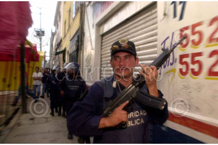 En medio de un fuerte operativo de seguridad marcelo ebrard, el secretario de Seguridad Pública, realizó un recorrido en las calles del barrio de Tepito luego del enfrentamiento entre granaderos y delincuentes el día de ayer. FOTO: Juan Pablo Zamora/CUARTOSCURO.COM