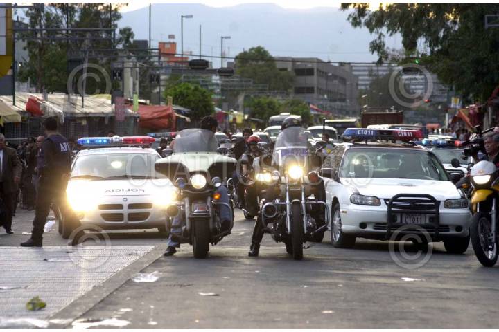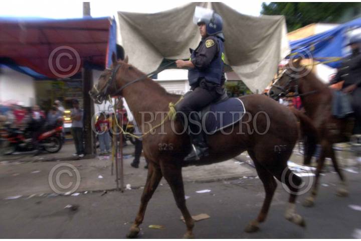 Elementos de la policia montada escoltaron al secretario de Seguridad Pública, Marcelo Ebrard, durante el recorrido en las calles de Tepito. FOTO: Juan Pablo Zamora/CUARTOSCURO.COM