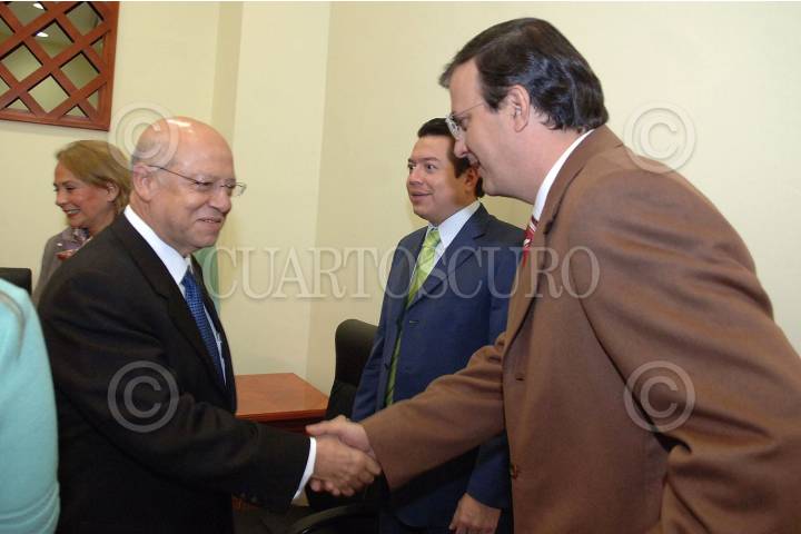 MÉXICO D.F. 28NOVIEMBRE2007.-Ministros de la Suprema Corte de Justicia de la Nación (SCJN) realizaron una visita de cortesía al jefe de Gobierno del Distrito Federal, Marcelo Ebrard Casaubón, en un marco de respeto y colaboración entre los diferentes niveles de gobierno.En la imagen esl ministro Guillermo Ortiz Mayagoitia, saluda Marcelo Ebrada Casaubon, jefe del gobierno capitalino. FOTO: LUIS MANUEL MEJIA/CUARTOSCURO.COM