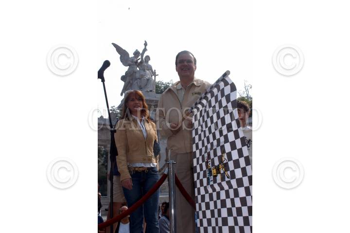 MÉXICO D.F. 24JUNIO2007.-El jefe de gobirno capitalino Marcelo Ebrada Casaubón acompañado de su esposa Mariagna Prats, durante el banderaso de salida del segundo Ciclotón en el Hemiciclo a Juárez. FOTO: CUARTOSCURO.COM