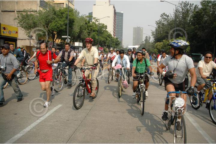 MÉXICO D.F. 24JUNIO2007.-El jefe de gobierno capitalino Marcelo Ebrada Casaubón quien después del banderaso de salida comenzo su reccorrido por diversas calles ar de la ciudad durante el segundo Ciclotón. FOTO: CUARTOSCURO.COM