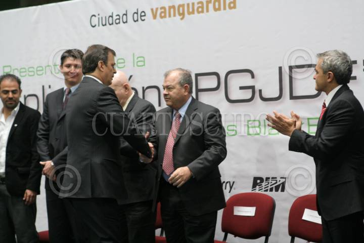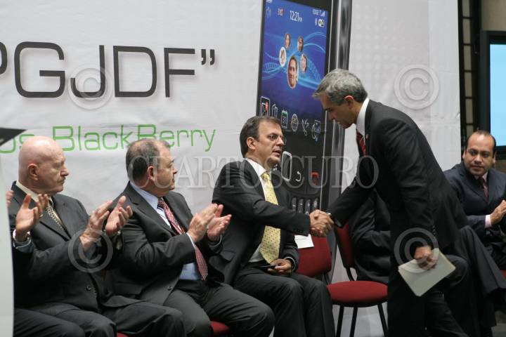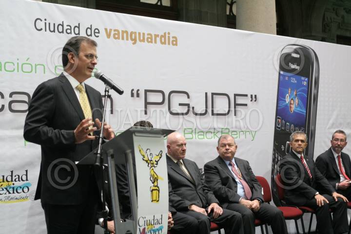 MÉXICO, D.F., 10MARZO2011.- Marcelo Ebrrad Casaubón, Jefe de Gobierno, encabezó la presentación de la aplicación para BlackBerry que permite a los usuarios utilizar el MP Virtual para presentar denuncias por delitos como fraude o robo sin violencia FOTO: MOISÉS PABLO/CUARTOSCURO.COM