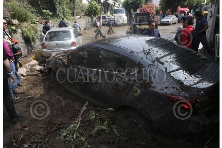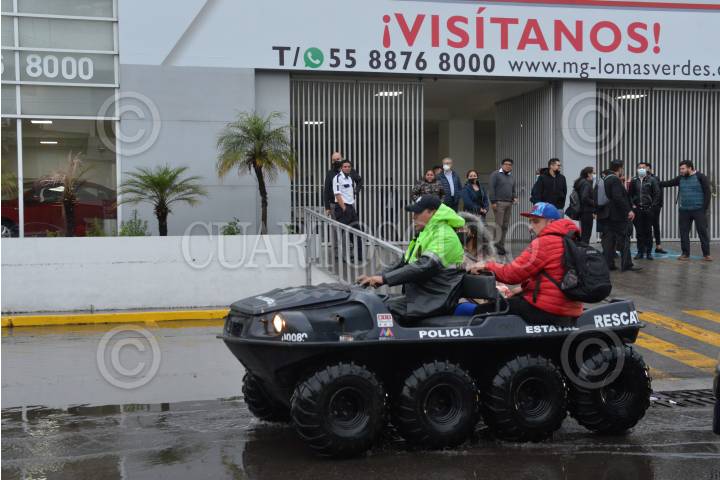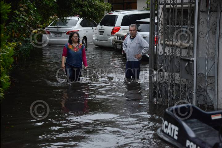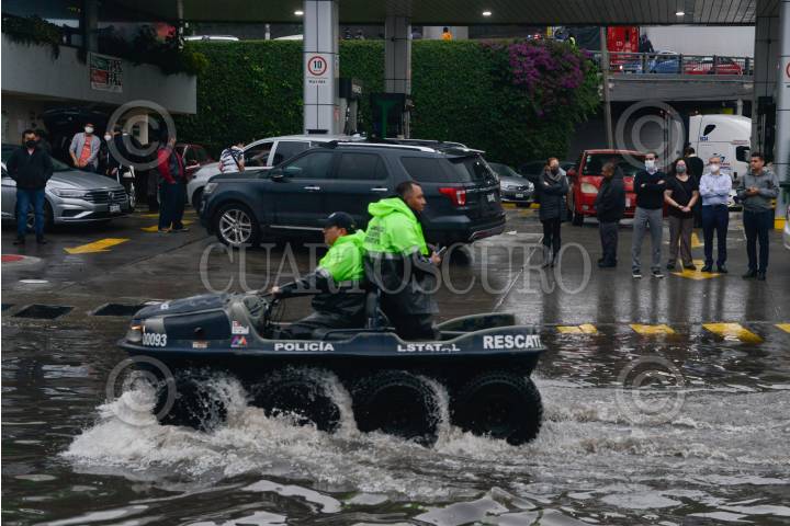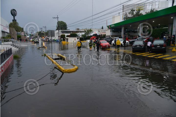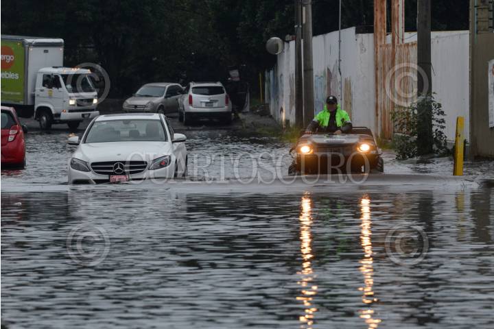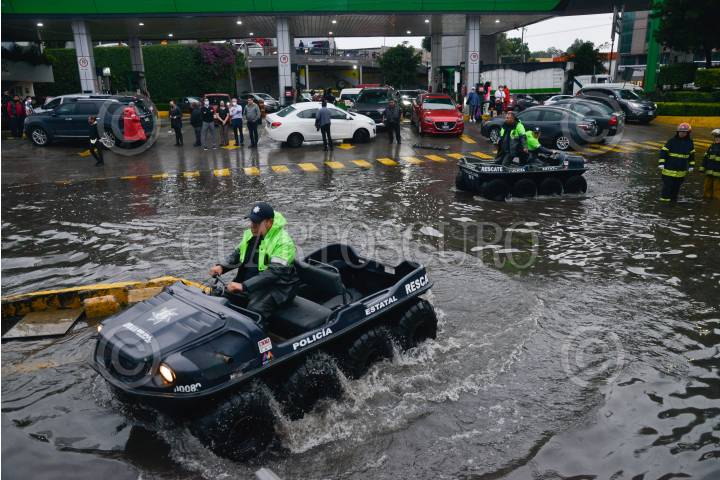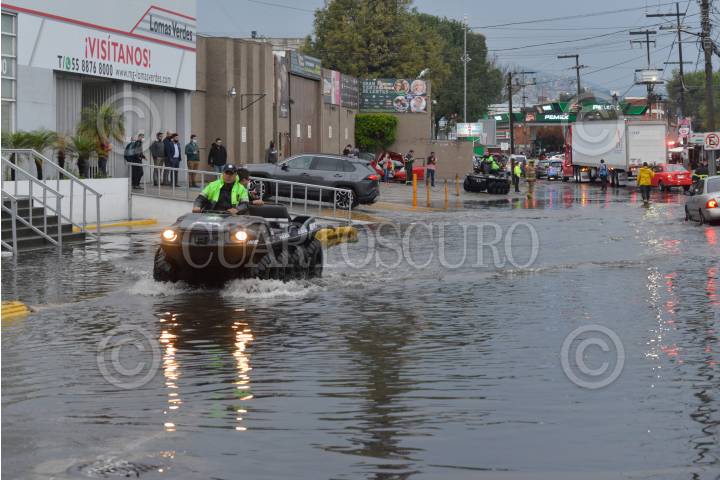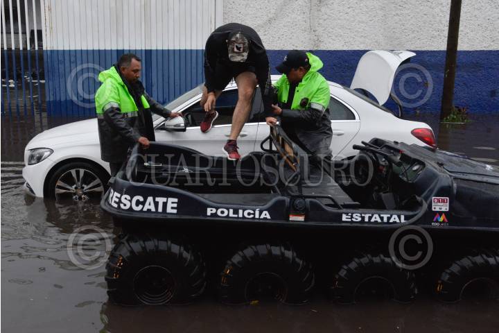 Las fuertes lluvias registradas esta tarde en la entidad provocaron inundaciones sobre avenida Jardines de San Mateo en cruce con Periférico Sur. Al lugar asistieron personal de la Comisión Estatal de Seguridad (CES) para auxiliar a los automovilistas y peatones varados en el lugar.
