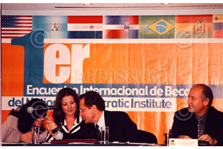 El secretario general del CEN del PRI, Rodolfo Echevarría, Marcela Jiménez, Gerardo le Chavallier durante el primer Encuentro Nacional de Becarios relizado por el National Democratic Institute. FOTO: Christian Palma/CUARTOSCURO.COM