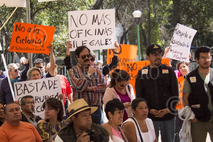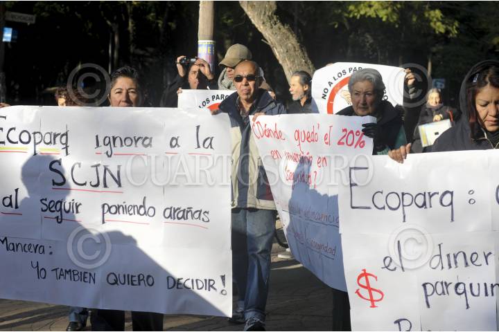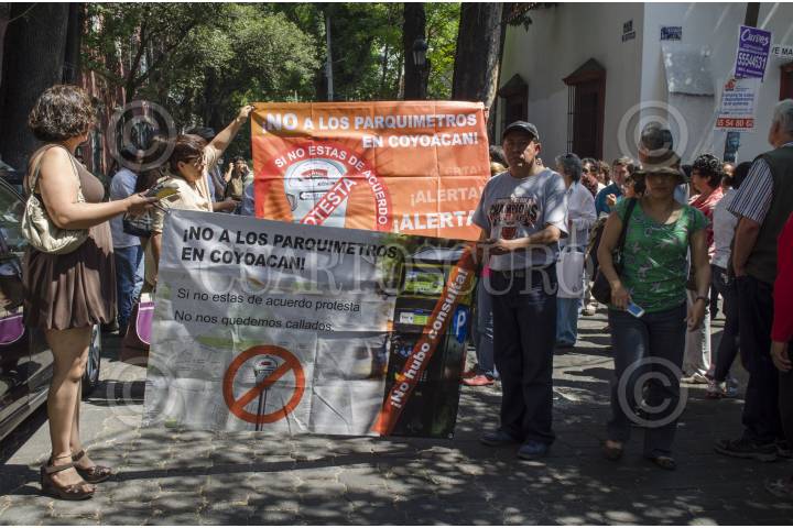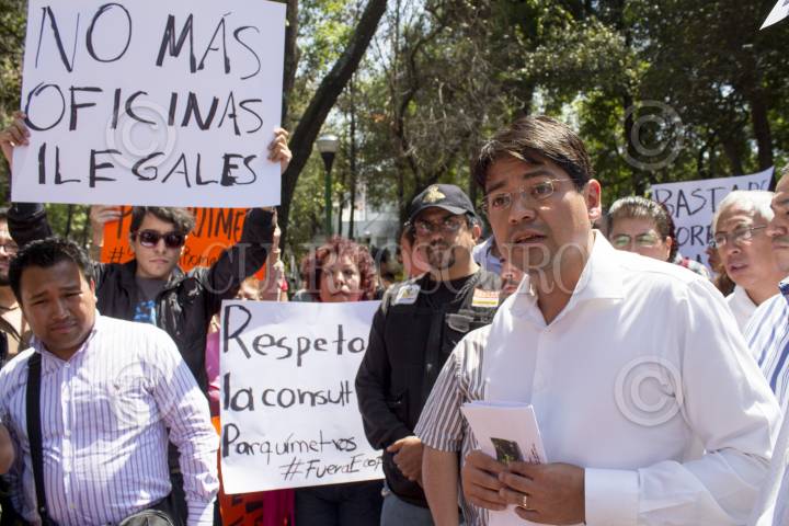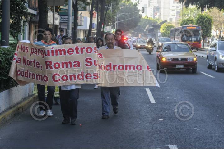 MÉXICO, D.F., 20ENERO2014.- Vecinos de la colonia Condesa, Roma e Hipódromo, realizaron una marcha del Parque México rumbo a la avenida Insurgentes donde caminaron de la calle Sonora hasta Álvaro Obregón, la manifestación se realizó por el primer aniversario de la colocación de parquimetros en la zona, los vecinos se declaran en contra de la empresa Ecoparq, argumentando que esta no ha solucionado los problemas de vialidad e inseguridad a los que se había comprometido junto con el gobierno. FOTO: DIEGO SIMÓN SÁNCHEZ /CUARTOSCURO.COM