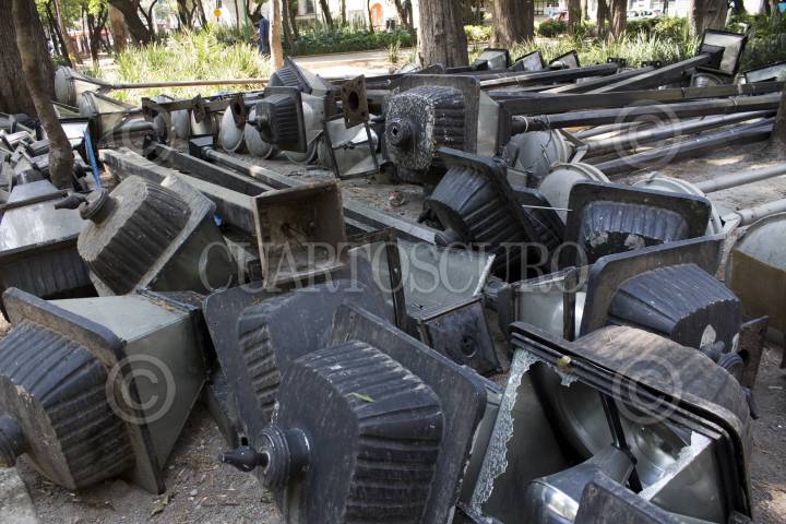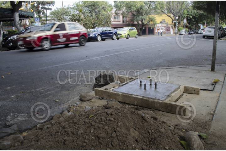 MÉXICO, DF., 07MARZO2014.- La instalación de parquímetros en el centro de la delegación Coyoacán fue suspendida temporalmente por mandato del Instituto Nacional de Antropología e Historia (INAH), quien dictaminó que el gobierno capitalino no entregó la documentación correspondiente por tratarse de una zona histórica. La Secretaria de Desarrollo Urbano y Vivienda (SEDUVI) expresó que el INAH no tiene autoridad para decidir en este tema. Algunas versiones manejan que vecinos del Barrio Santa Catarina "doblaron" las bases metálicos de los parquímetros, versión que ellos niegan. Hasta el momento no existen pruebas que señalen a los responsables. Rumores indican que la colocación de parquímetros ha iniciado en el barrio de El Carmen sobre la Av. México, sin embargo trabajadores señalan que se trata de columnas para alumbrado público y no para la colocación de parquímetros. FOTO: MARÍA JOSÉ MARTÍNEZ /CUARTOSCURO.COM