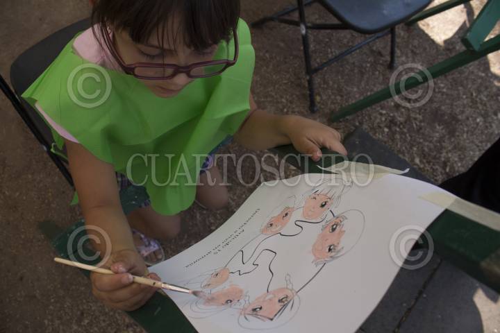 MEXICO, D.F., 02MARZO2014.-Alejandro Fernández, delegado de Cuauhtémoc, entregó esta mañana la primer parte de los trabajos de remozamiento del parque España, ubicado en la colonia Condesa, en dicha demarcación. Señaló que como parte de los trabajos se cambiaron todas las luminarias y se instalaron dos transformadores para alimentar de energía eléctrica el parque, que anteriormente era energizado irregularmente. Así mismo se remodelaron los baños, con la colocación de accesos para discapacitados y torniquetes de cobro, para obtener recursos para la segunda parte de remozamiento. El presupuesto otorgado a esta obra fue de cinco millones de pesos. A la presentación acudieron vecinos inconformes que se manifestaron con carteles en contra de la instalación de parquímetros y contra el proyecto de convertir la zona en un barrio latino, entre otras demandas, a lo que el diputado contestó otorgando una cita para atender todas las demandas el próximo jueves. En la imagen, una niña participa en un taller organizado por la delegación en el marco de la entrega. FOTO: DAVID POLO /CUARTOSCURO.COM