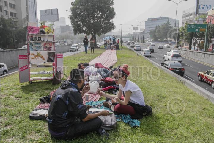 MÉXICO, D.F., 24NOVIEMBRE2013.- Un grupo de ambientalistas realizaron un picnic sobre el Viaducto Miguel Alemán, a la altura de Insurgentes, para manifestar su deseo de que esta vialidad de pueda volver un río vivo. FOTO: ISAAC ESQUIVEL /CUARTOSCURO.COM