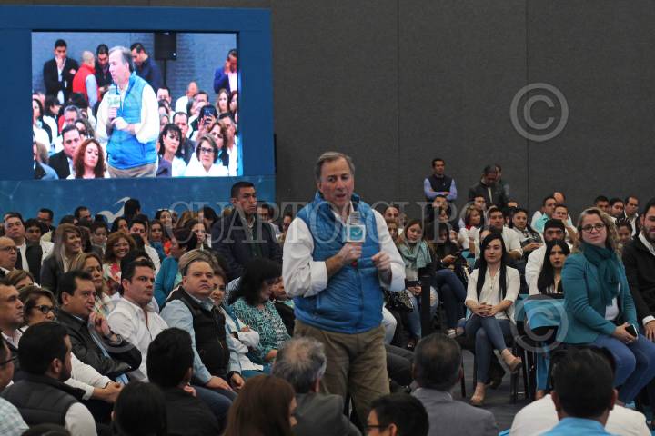 GUADALAJARA, JALISCO, 03FEEBRERO2018.- José Antonio Meade Kuribreña precandidato del PRI, Nueva Alianza y Partido Verde Ecologista, sostuvo un encuentro con la militancia del Partido Nueva Alianza, esto en las instalaciones de la Expo. FOTO: FERNANDO CARRANZA GARCIA / CUARTOSCURO.COM
