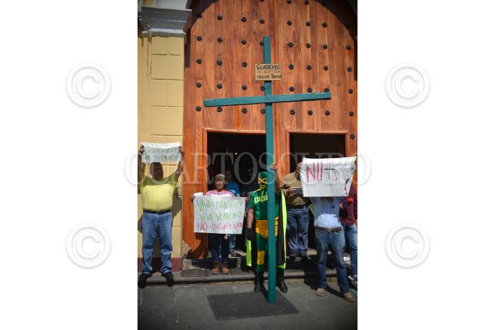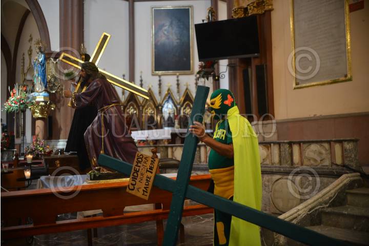 XALAPA, VERACRUZ, 26MARZO2018.- Como cada año un luchador llamado Ecologista Universal parte de la catedral xalapeña enmascarado y cargando una cruz con direccion a la Central Nuclear "Laguna Verde" como protesta en contra de su funcionamiento, este año cumple 33 años realizando su recorrido. FOTO: ALBERTO ROA / CUARTOSCURO.COM