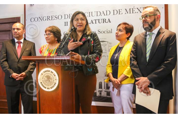 Marina Robles García, secretaria del Medio Ambiente de la Ciudad de México, participa en la conferencia de prensa sobre la presentación de la iniciativa de la Ley General de Economía Circular. La acompañaron legisladores de Morena.