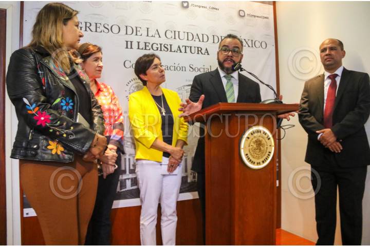 Marina Robles García, secretaria del Medio Ambiente de la Ciudad de México, participa en la conferencia de prensa sobre la presentación de la iniciativa de la Ley General de Economía Circular. Aquí con la diputada de Morena Guadalupe Sedema Iniciativa Congreso.