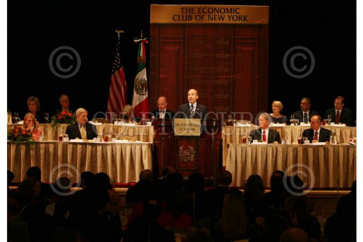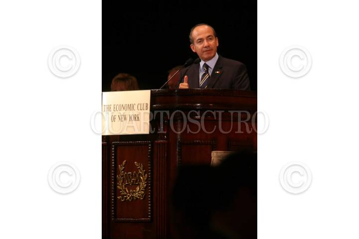 NUEVA YORK, ESTADOS UNIDOS. 25SEPTIEMBRE2008.- El presidente de México, Felipe Calderón Hinojosa, durante el almuerzo con el "Economic Club Of New York", que tuvo lugar en el hotel Waldorf-Astoria. FOTO: ALFREDO GUERRERO/CUARTOSCURO.COM