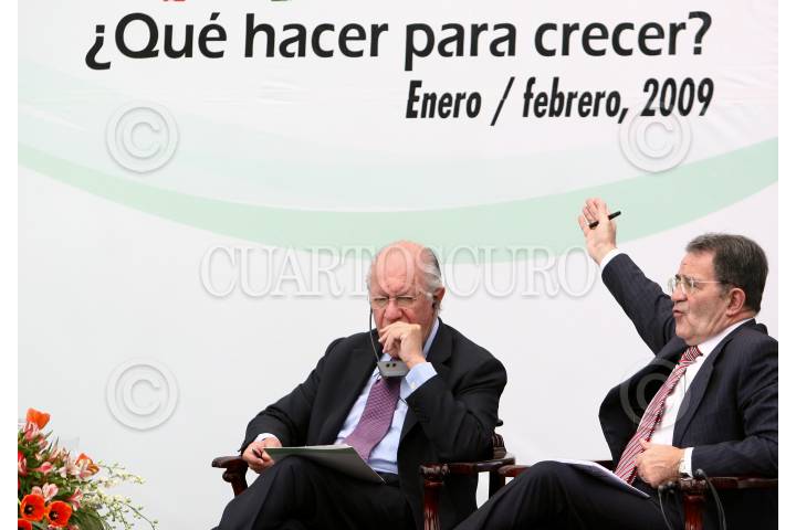 MÉXICO, D.F., 27ENERO2009.- El ex-presidente chileno, Ricardo Lagos y el ex-primer ministro Romano Prodi, durante los trabajos de el foro "México Ante la Crisis: ¿Qué Hacer Para Crecer?" organizado por el Senado de la República y que se realizó en el Alcazar de Chapultepec. FOTO: MOISÉS PABLO/CUARTOSCURO.COM