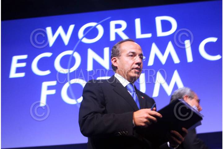 DAVOS, SUIZA., 30ENERO2009.- Felipe Calderón, Presidente de México, durante la mesa redonda con lideres mundiales denominada "Reviving Global Economic Growth" que se realizó en el marco de la reunión anual 2009 del foro económico mundial. FOTO: ALFREDO GUERRERO/CUARTOSCURO.COM