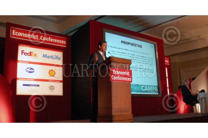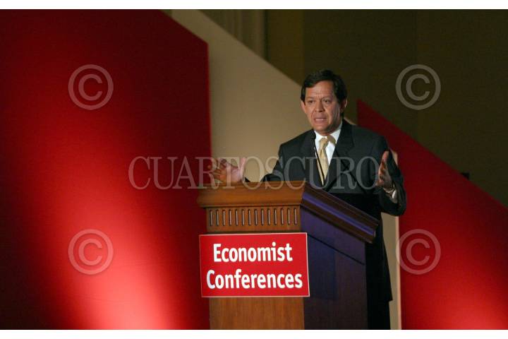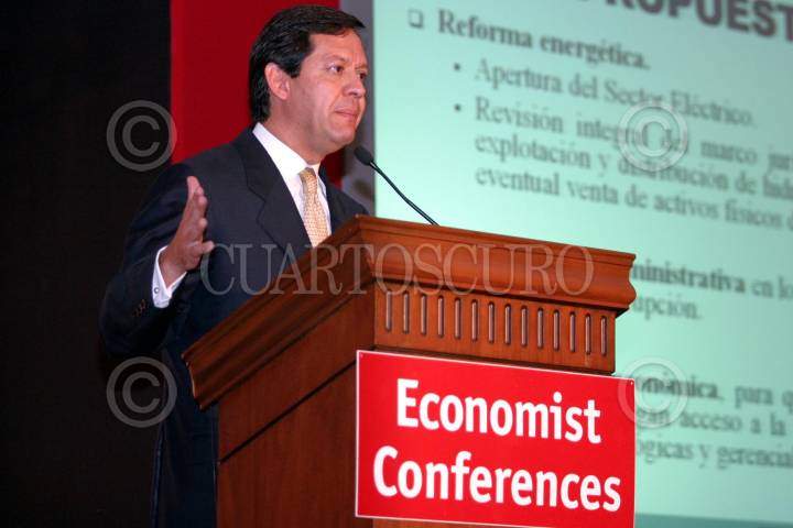 MEXICO, D.F., 29JUNIO2005.- Fernando Elizondo, Secretario de Energía, durante la ponencia Los Retos del Sector de Energía, en el marco The Economist Conferences, realizado en un hotel de Av. Reforma. FOTO: Moisés Pablo/CUARTOSCURO.COM