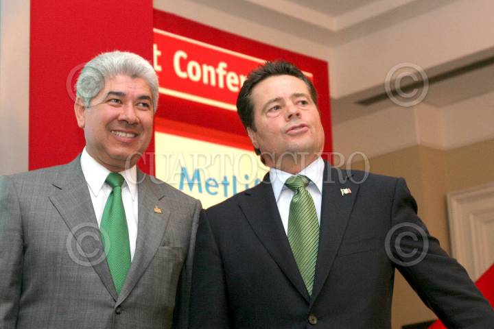 MÈXICO D.F. 09MAYO 2006.- Eduardo Bours, gobernador de Sonara y Francisco Javier Acuña, gobernador de Jalisco, durante el Foro The Economist. FOTO: Guillermo Perea/CUARTOSCURO.COM