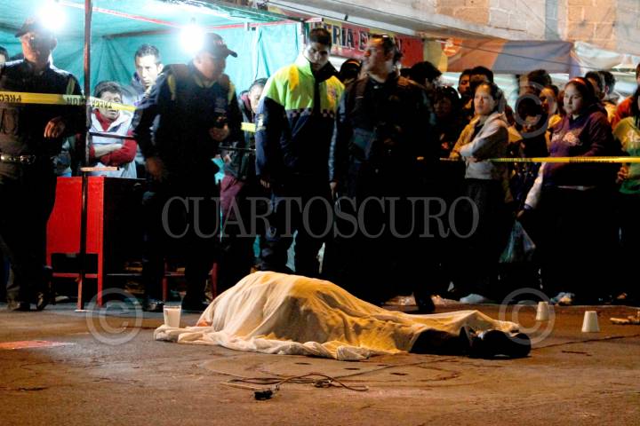 ECATEPEC, ESTADO DE MÉXICO, 03ENERO2013.- Chistian Pichardo Perez de 28 años fue asesinado de 6 disparos de diferentes calibres en la calle 16 de Septiembre de la colonia 19 de Septiembre en el municipio de Ecatepec. Elementos periciales de este municipio acudieron para tomar conocimiento de los hechos e iniciar las investigaciones de ley. FOTO: LUIS CARBAYO /CUARTOSCURO.COM