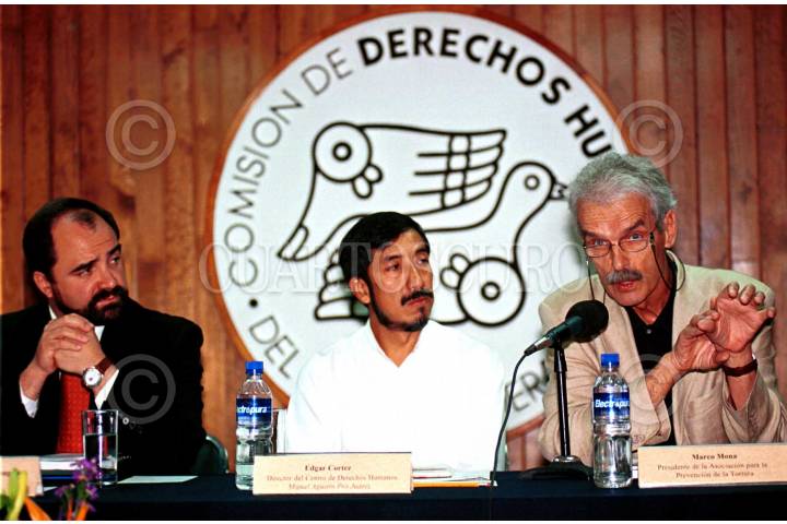 Emilio Alvarez Icaza, Edgar Cortez y Marcos Mona, hablaron sobre la próxima reunión internacional de defensores de Derechos Humanos, que se realizará en México. FOTO: Victoria Valtierra/CUARTOSCURO.COM