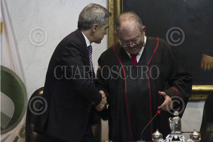 CIUDAD DE MÉXICO, 16AGOSTO2016.- Miguel Ángel Mancera, Jefe de Gobierno, y Edgar Elías Azar, presidente del Tribunal Superior de Justicia de la Ciudad de México, encabezaron la ceremonia de entrega de la medalla Ignacio Manuel Altamirano 2016, celebrada en la sede del TSJCDMX. FOTO: MOISÉS PABLO /CUARTOSCURO.COM