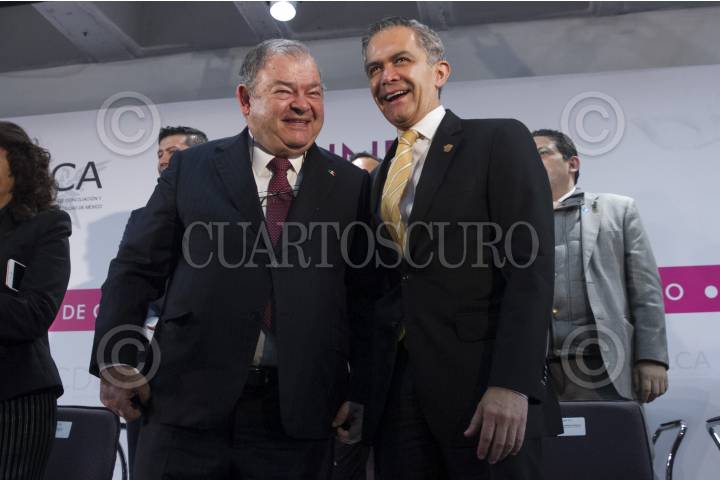 CIUDAD DE MÉXICO, 17NOVIEMBRE2016.- Edgar Elías Azar, presidente del Tribunal Superior de Justicia de la Ciudad de México, y Miguel Ángel Mancera, Jefe de Gobierno, asistieron a la presentación del 4 Informe de actividades de Margarita Darlene Rojas Olvera, presidenta de la Junta Local de Conciliación y Arbitraje de la CDMX. FOTO: MOISÉS PABLO /CUARTOSCURO.COM