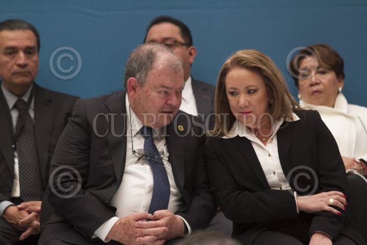 CIUDAD DE MÉXICO, 28NOVIEMBRE2016.- Edgar Elías Azar, presidente del Tribunal Superior de Justicia de la Ciudad de México, conversa con Yasmín Esquivel Mossa, magistrada presidenta del Tribunal de los Contencioso Administrativo Ciudad de México, quien presentó su informe de labores en el Museo de la Ciudad de México. FOTO: MOISÉS PABLO /CUARTOSCURO.COM