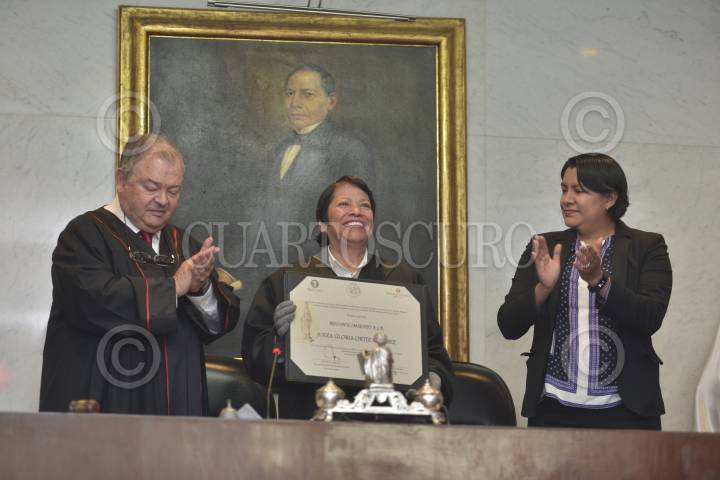 CIUDAD DE MÉXICO, 16AGOSTO2016.- La Juzgadora Elvira Rosa Díaz Rocha recibio la presea Manuel Ignacio Altamirano 2016, en ceremonia presidida por Edgar Elías Azar, presidente del Tribunal Superior de Justicia de la Ciudad de México. FOTO: MOISÉS PABLO /CUARTOSCURO.COM