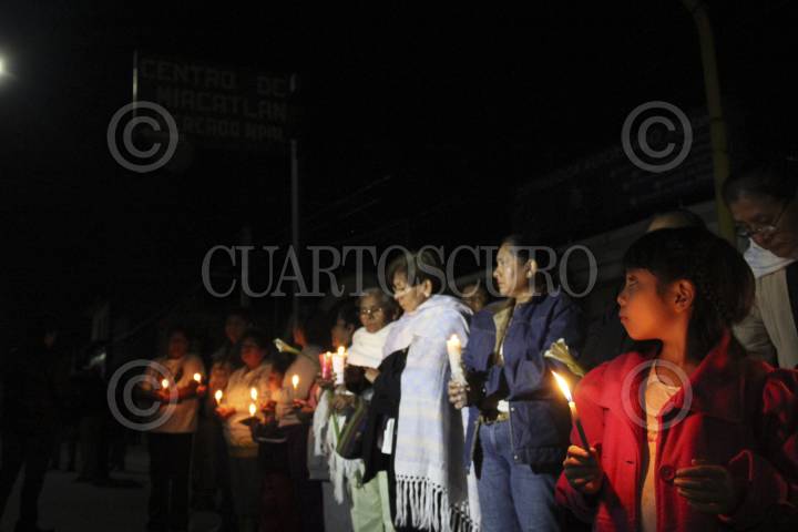 MIACATLÁN, MORELOS, O1FEBRERO 2014.- La madrugada del sábado llegó el cuerpo de Edgar Tamayo a su pueblo natal, donde se encontraban reunidos para recibirlo sus familiares, amigos y vecinos, portando veladoras. Caminaron de la entrada del pueblo a la casa de los padres de Edgar, donde será velado. FOTO: PATRICIA MORALES /CUARTOSCURO.COM