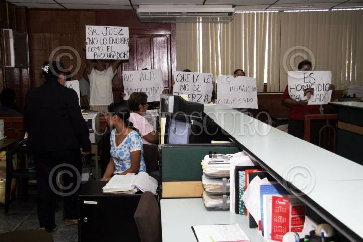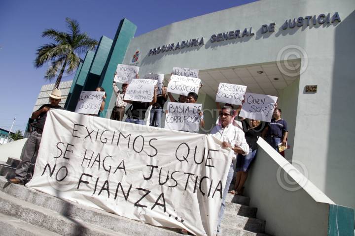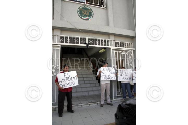 VILLAHERMOSA, TABASCO, 01FEBRERO2008.- Familiares del fallecido Edgardo Reyes Castellanos se manifiestan con cartelones en el juzgado tercero de lo penal que se ubica en el área del CRESET en donde se llevara a acabo la sentencia del Policía Ministerial por homicidio simple. FOTO: MARCO POLO GUZMÁN HERNÁNDEZ/CUARTOSCURO.COM