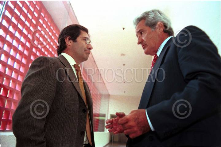 Edgardo Codesal presidente de asociacion de arbitros conversa con Rafael Lebrija presidente de la rama de la primera division. FOTO: Christian Palma /CUARTOSCURO.COM
