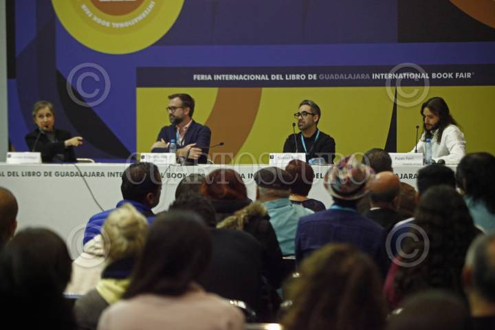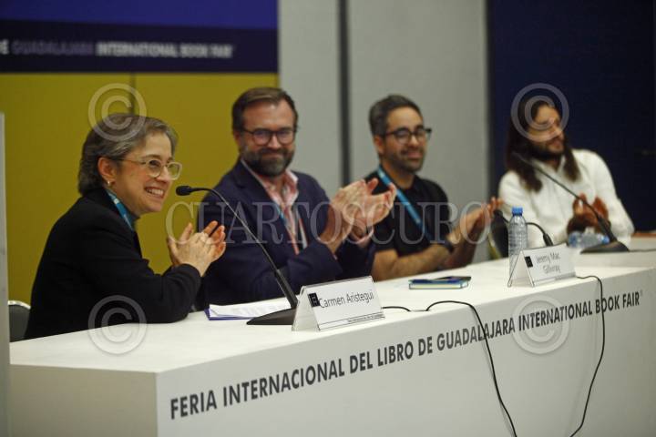 GUADALAJARA, JALISCO. 02DICIEMBRE2023.- Esta tarde en las instalaciones del Foro FIL de la Expo y en el marco de la edición 37 de la Feria Internacional del Libro de Guadalajara (FIL) que tiene como invitado de honor, la Unión Europea, se llevo a cabo el Foro Arte Periodismo y Migración, puentes de empatía con la xenofobia, mismo que fue moderado por la periodista Carmen Aristegui. FOTO: FERNANDO CARANZA GARCIA / CUARTOSCURO.COM