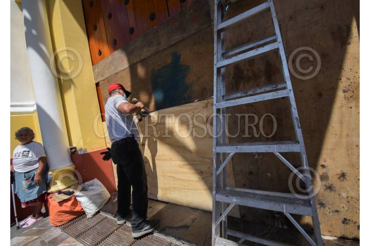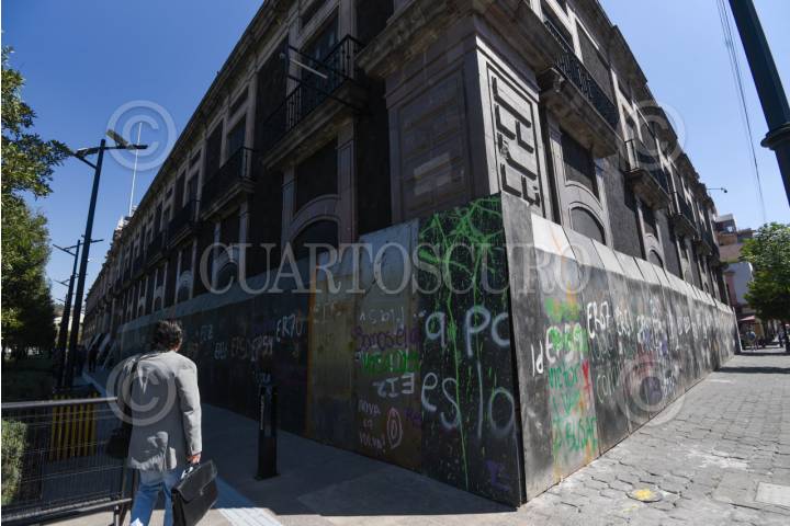 TOLUCA, ESTADO DE MÉXICO, 07MARZO2024.- Previo a las marchas por el Día Internacional de la Mujer de este 8M edificios como la Cámara de Diputados local, Palacio de Gobierno, el Poder Judicial, la Plaza de los Mártires, el Parque de la Ciencia, el Ayuntamiento de Toluca, Catedral y la Iglesia de la Santa Veracruz y el Teatro Morelos ya lucen con vallas, ya que por estos lugares pasará el contingente de mujeres este viernes. FOTO: CRISANTA ESPINOSA AGUILAR /CUARTOSCURO.COM