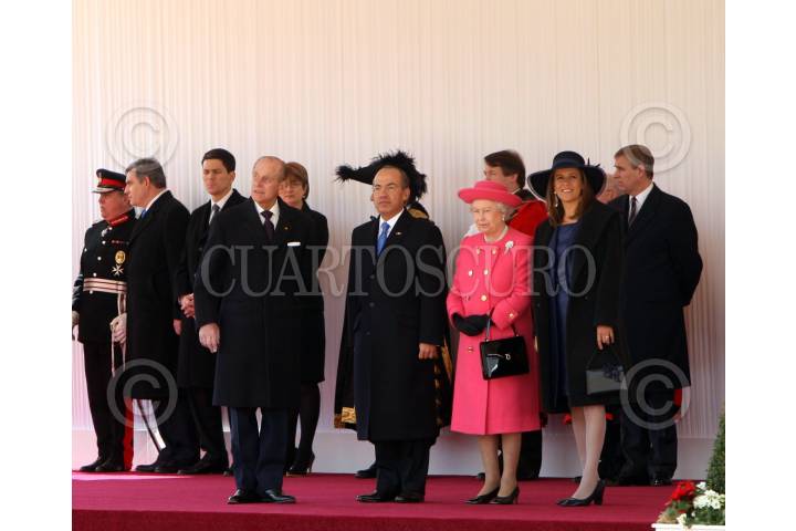 LONDRES, INGLATERRA, 30MARZO2009.- El Duque de Edimburgo, Felipe Calderón Hinojosa, presidente de México, la Reyna Isabel II y Margarita Zavala, durante la ceremonia de bienvenida del cual fué objeto de reconociemiento por por su visita de estado que realiá en este país. Ésto sucedió en la explanada Horse Guards Parade del Palacio de Buckingham. FOTO: ARIEL GUTIERREZ/CUARTOSCURO.COM