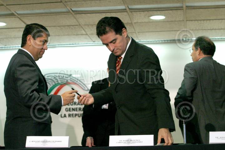MEXICO, D.F. 07JUNIO2006.- Francisco Daniel Cabeza de Vaca, Procurador General de la República al termino de la ceremonia de la firma de convenio con Editores Mexicanos. FOTO: Nelly Salas/CUARTOSCURO.COM