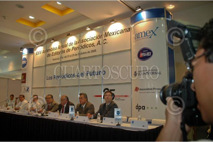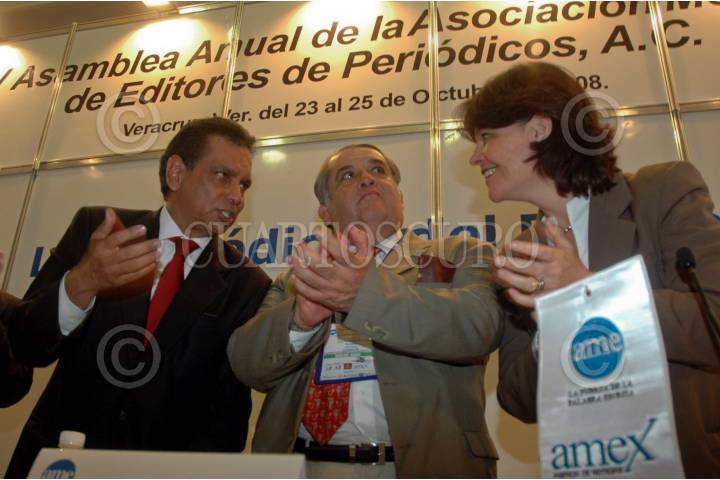 VERACRUZ, VERACRUZ. 24OCTUBRE2008.- Durante los días de hoy y mañana se desarrollan las actividades de la vigésimo cuarta asamblea anual de la asociación mexicana de editores de periódicos A.C. (AME). Mismas que fueron inauguradas por el gobernador del estado, Fidel Herrera Beltran, contando con la presencia de Irma PÌa González Corvera, subsecretaria de normatividad de medios de la SG, asÌ como de Gonzalo Leaño Reyes, presidente de la AME. FOTO: JOSE CANDELARIO/CUARTOSCURO.COM