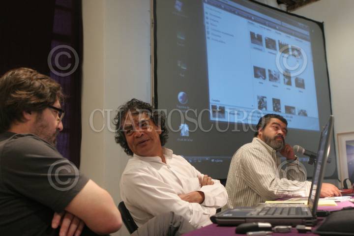 MÉXICO, D.F., 04SEPTIEMBRE2009.- Dani Yako editor del Diario El Clarín, Pedro Valtiera, director de la revista Cuartoscuro y Frabrizio León, editor de fotografía de La Jornada durante el foro El fotógrafo como editor III en el Centro de la Imagen. FOTO: IVÁN STEPHENS/CUARTOSCURO.COM