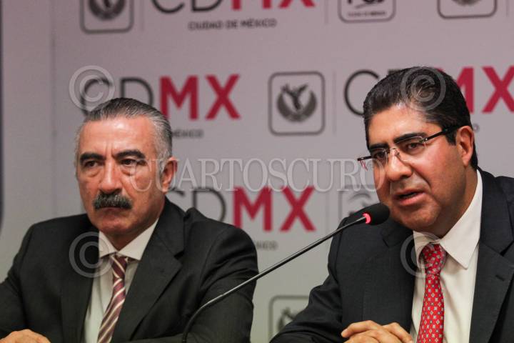 CIUDAD DE MÉXICO, 19JULIO2017.- Raúl Peralta Alvarado, jefe general de la Policía de Investigación, Edmundo Porfirio Garrido, procurador general de Justicia de la Ciudad de México, durante su mensaje a medios para dar a conocer los seguimientos de diversos casos, así como la detención de implicados en un robo a negocio en Iztapalapa. FOTO: GALO CAÑAS /CUARTOSCURO.COM