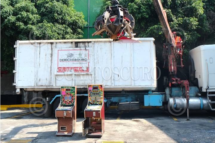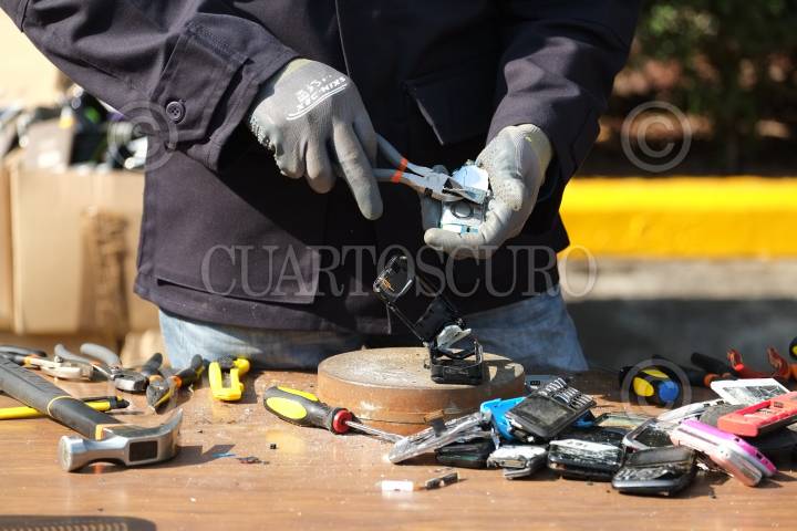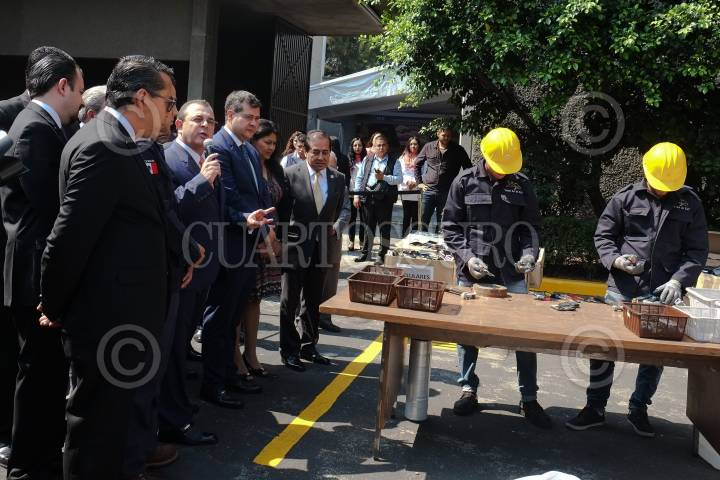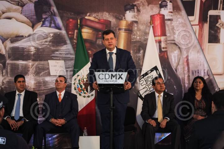 CIUDAD DE MÉXICO, 27ABRIL2018.- José Ramón Amieva, jefe de Gobierno de la Ciudad de México y Edmundo Garrido, procurador de Justicia Capitalino, encabezaron la destrucción de mercancía confiscada proveniente del extranjero. Entre los productos destruidos se encontraban cigarros, máquinas de juegos, ropa de paca y alcohol. FOTO: ANDREA MURCIA /CUARTOSCURO.COM