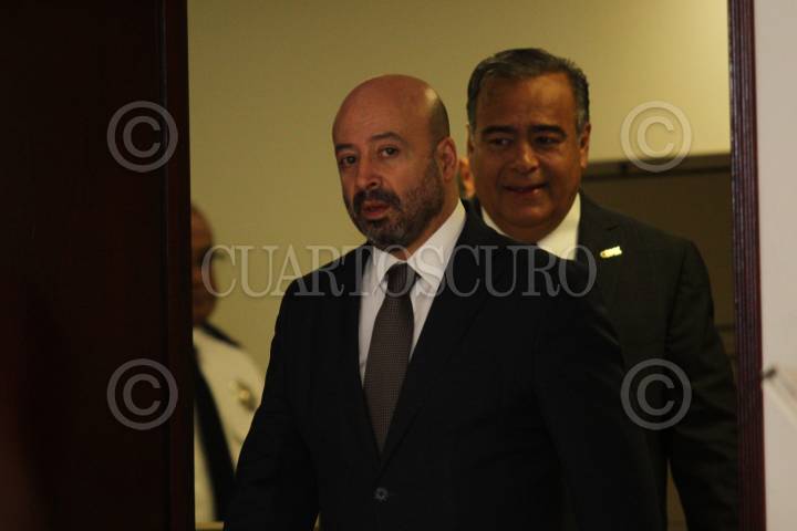 CIUDAD DE MÉXICO, 09AGOSTO2018.- Renato Sales Heredia, comisionado Nacional de Seguridad, y Raymundo Collins, titular de la Secretaria de Seguridad Pública de la capital, llegaron a las inmediaciones de la Secretaria de Gobernación para dar detalles de la detención, en la delegación Tlalpan, de Roberto Moyado Esparza “El Betito”, presunto líder actual de la organización criminal “La Unión de Tepito”. Sales Heredia detalló que la detención de Moyado Esparza se realizó sin violencia y que le fueron leídos sus derechos tanto a él como a su hermano José “N”. De igual manera, el Comisionado Nacional específico que “El Betito” se había sometido a cirugías estéticas para evitar su reconocimiento por parte de los elementos policiales. FOTO: GALO CAÑAS /CUARTOSCURO.COM