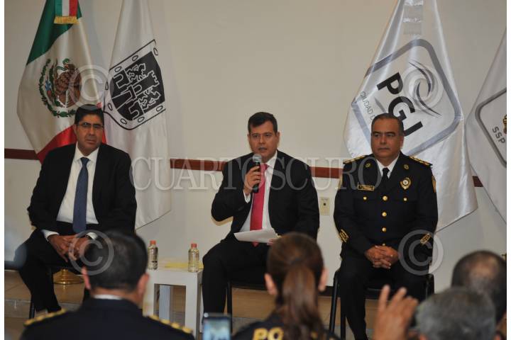 CIUDAD DE MÉXICO, 18OCTUBRE2018.- Edmundo Garrido, titular de la PGJCDMX; José Ramón Amieva, Jefe de Gobierno, y Raymundo Collins, titular de la SSPCDMX, hablaron sobre la iniciativa legislativa de la aplicación de prisión preventiva a quien porte o utilice armas de fuego de replica. FOTO: ARMANDO MONROY /CUARTOSCURO.COM