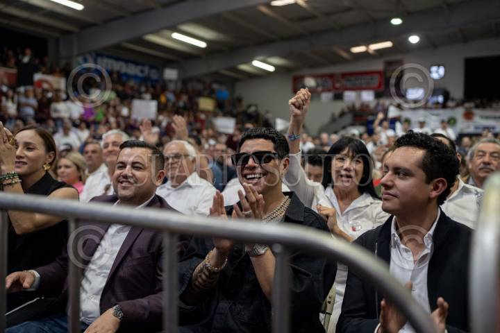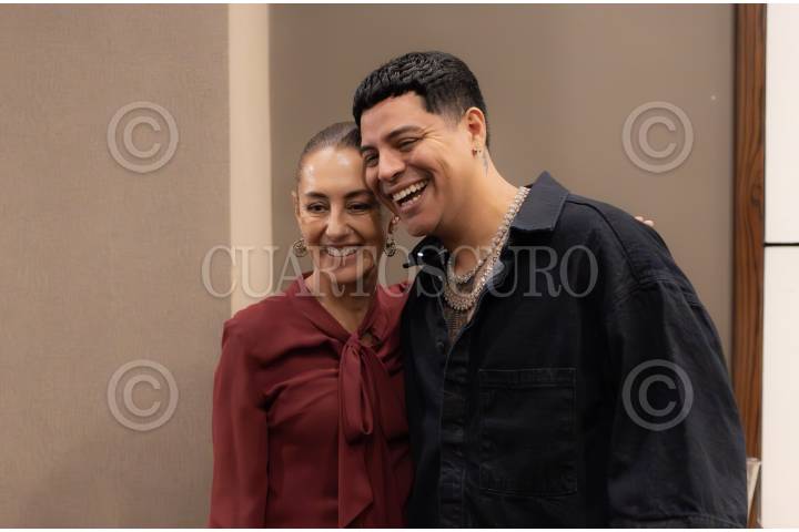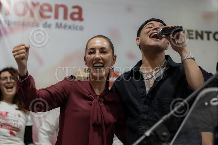 ENSENADA, BAJA CALIFORNIA, 22SEPTIEMBRE2023.- Eduin Caz, vocalista de grupo Firme, estuvo presente con la Dra. Claudia Sheinbaum, aspirante a la candidatura de la Presidencia de la República quien visitó el puerto de Ensenada. El evento “Encuentro con Militancia Baja California, miles de simpatizantes acudieron para brindarle su apoyo a Sheinbaum, quien destacó la ardua labor de la gobernadora del estado por los progresos del Estado. El dirigente de Nacional de Morena, Mario Delgado, la gobernadora Marina del Pilar, el alcalde de Ensenada, Armando Ayala y hasta la presidenta municipal de Tijuana, Monserrat Caballero, estuvieron presentes en la reunión. Entre los momentos emblemáticos del evento, se destacó la escena donde Sheinbaum cantó una de las canciones favoritas del Presidente Andrés Manuel López Obrador, “Ya supérame” en compañía del cantante de Grupo Firme, Eduin Caz. FOTO: OMAR MARTÍNEZ/ CUARTOSCURO.COM