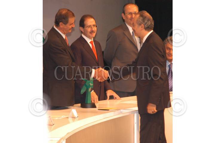MÉXICO, D.F. 09NOVIEMBRE2005.- El Presidente, Vicente Fox; Eduardo Romero Ramos, Secretario de la Función Pública y Francisco Gil Díaz durante la entrega de Premios y Reconocimientos a la innovación y a la calidad en la administaración Pública . FOTO: Miriam Sánchez/CUARTOSCURO.COM