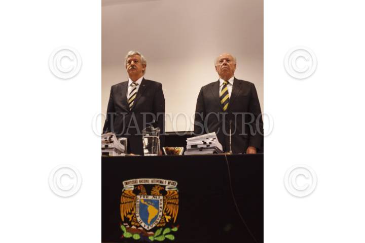 MÉXICO, D.F., 24MARZO2015.- Eduardo Barzana García, secretario general de la UNAM y José Narro Robles, rector de la UNAM, durante un minuto de silencio por los universitarios ilustres que murieron en los últimos meses durante la sesión del Consejo Universitario, en la Antigua Escuela de Medicina. FOTO: MOISÉS PABLO /CUARTOSCURO.COM