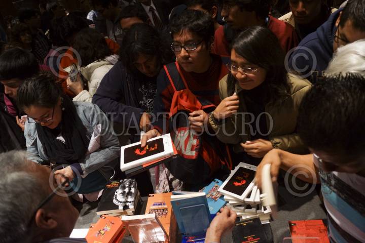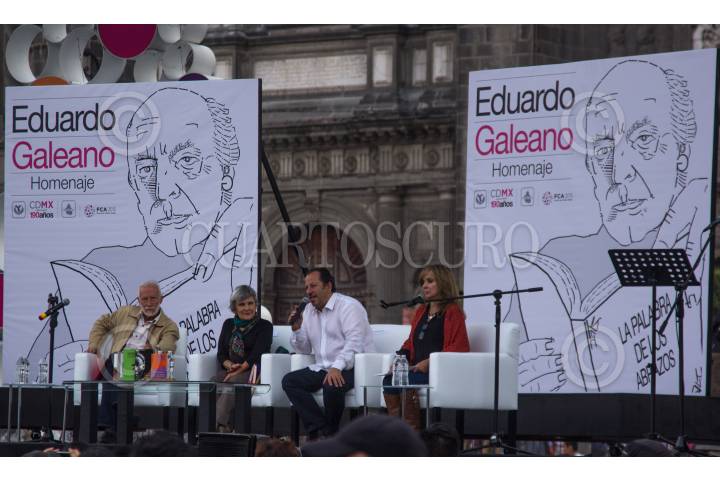 MÉXICO, D.F., 24MAYO2015.-Dentro del espacio de la Feria de las Culturas Amigas en el Zócalo Capitalino, se realizó un homenaje al escritor Eduardo Galeano donde recordaron viejos anecdotas y libros. FOTO: ENRIQUE ORDÓÑEZ /CUARTOSCURO.COM