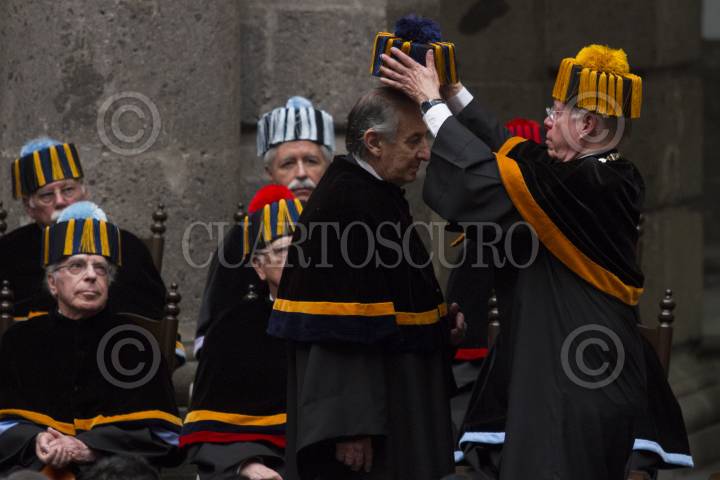 MÉXICO, D.F., 07AGOSTO2015.- El poeta Eduardo Lizalde fue investido como Doctor Honoris Causa 2015 por la UNAM, en el Palacio de Minería, el grado le fue entregado por el rector José Narro Robles. FOTO: MOISÉS PABLO /CUARTOSCURO.COM