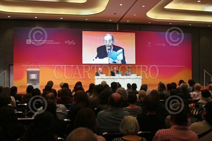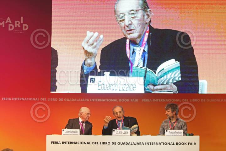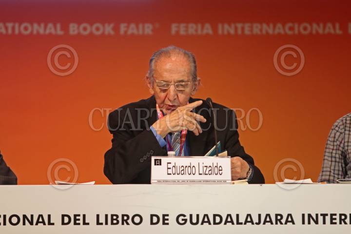 GUADALAJARA, JALISCO, 26NOVIEMBRE2017.- Presencia de Eduardo Lizalde ganador del Premio Internacional Carlos Fuentes, esto en el Marco de la edición 31 de la Feria Internacional del Libro de Guadalajara que se lleva a cabo en las instalaciones de la Expo. FOTO: FERNANDO CARRANZA GARCIA / CUARTOSCURO.COM