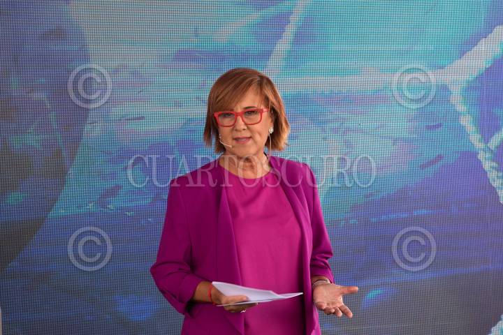 La comentarista deportiva Georgina González, en el evento donde se ratificó a BBVA México como patrocinador master de la Liga MX.
