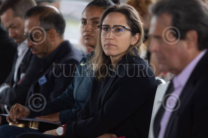 Mariana Gutiérrez, directora de la Liga MX Femenil, durante la firma entre la Liga MX y BBVA México, esta última seguirá siendo su patrocinador master.
